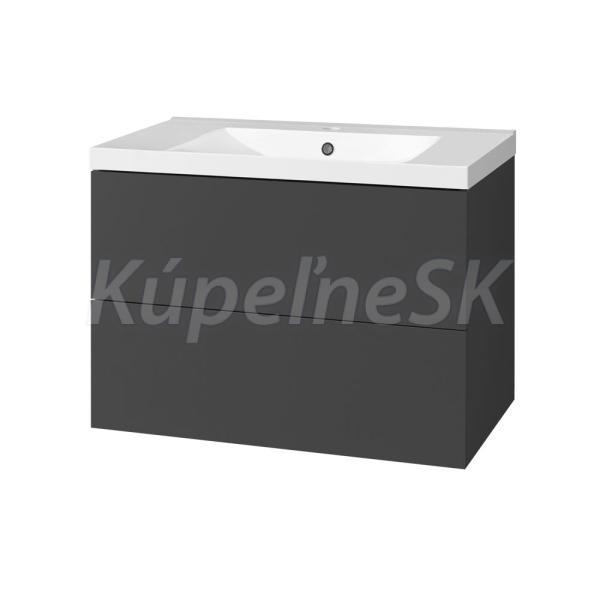 Aira, kúpeľňová skrinka s umývadlom z liateho mramoru 810x578x465 mm, spodná, antracit, 2 zásuvky, push-open systém a pomalé dovieranie.
