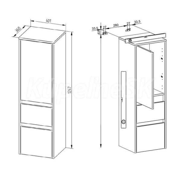 Zákazková výroba, Opto, kúpeľňová skrinka, vysoká, 401x1247x360 mm, závesná, dvierka a 2 zásuvky, ľavé otváranie, Multidecor, Biela Arctic