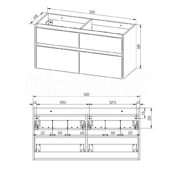 Zákazková výroba, Opto, kúpeľňová skrinka 1205x580x458 mm, spodná, Biela Arctic, 4 zásuvky. Možno kombinovať s umývadlom, popr. s kúpeľňovou doskou na skrinku.