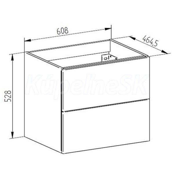 Zákazková výroba, Aira, kúpeľňová skrinka 608x528x465 mm, spodná, 2 zásuvky, push-open systém a pomalé dovieranie, Multidecor, Biela Arctic. Možno kombinovať s umývadlom, popr. s kúpeľňovou doskou na skrinku.