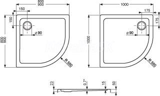 Roth FLAT ROUND 100×100cm štvrťkruhová akrylátová sprchová vanička, výška 5cm