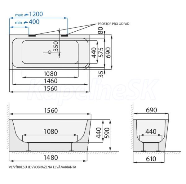 Santech TIME MILO-P 156x69 voľne stojaca akrylát vaňa s kónickým panelom+pozink.rám, Pravá