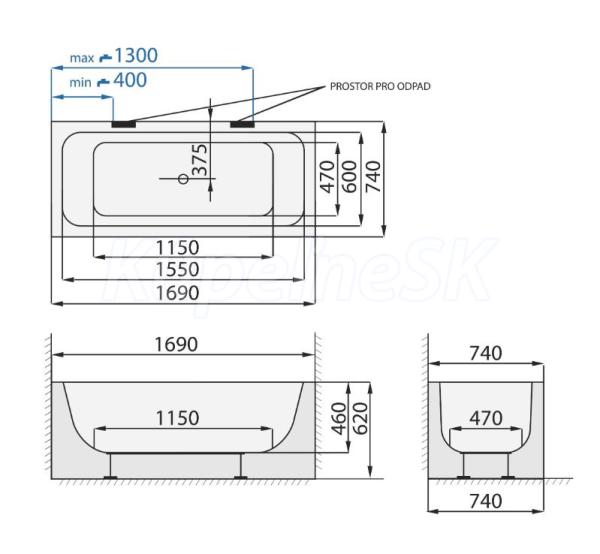 Prevedenie: samonosná voľne stojaca vaňa do niky