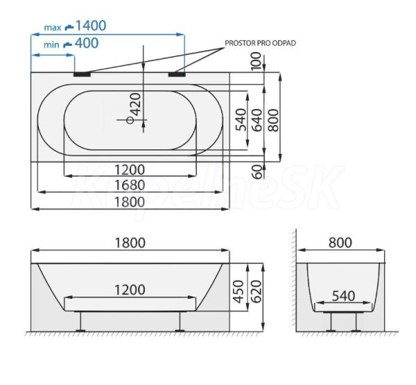 Santech TIME GEMINIXL-H 180x80 voľne stojaca akrylát vaňa hranaté rohy +pozink.rám