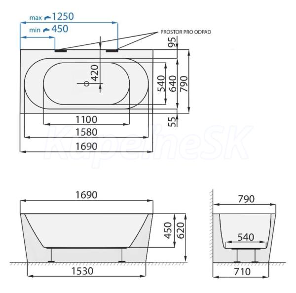 Santech TIME GEMINIXL-Z 169x79 voľne stojaca akrylát vaňa 3x zošikmené boky+pozink.rám