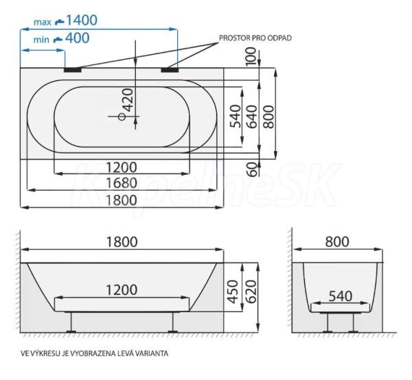 >>  Vane + príslušenstvo  >>  Voľne stojace vane akrylátové  >>  Santech TIME GEMINIXL-HP 180x80 voľne stojaca akryl vaňa hranaté rohy+pozink.rám,Pravá