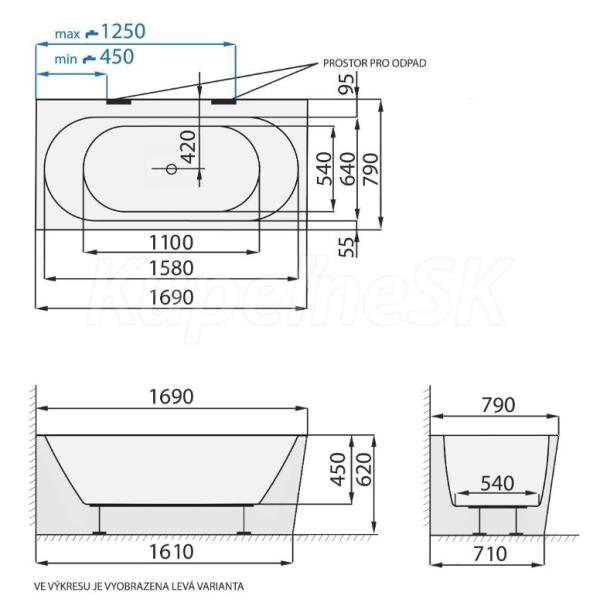 Santech TIME GEMINIXL-ZP 180x80 voľne stojaca akryl vaňa 3xzošik.boky+pozink.rám,Ľavá