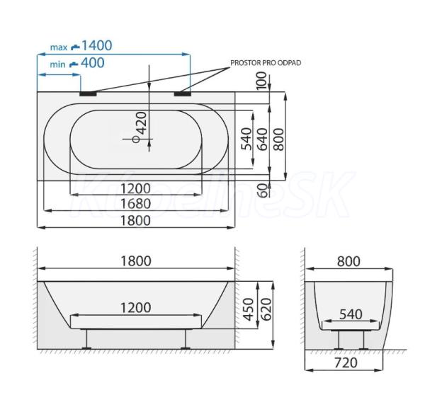 >>  Vane + príslušenstvo  >>  Voľne stojace vane akrylátové  >>  Santech TIME GEMINIXL R 180x80 voľne stojaca akrylát vaňa zaoblený pred.pan+pozink.rám