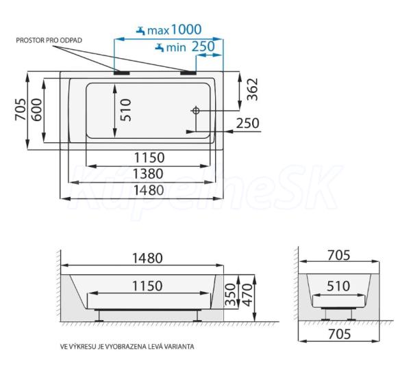 Prevedenie: samonosná voľne stojaca vaňa do rohu