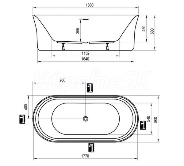 Vaňový odtokový komplet (t.j. prepad, pileta, sifón, zápachová uzávera) a podpora (nožičky) sú súčasťou balenia.