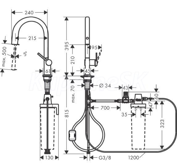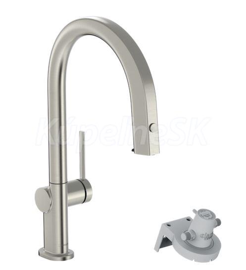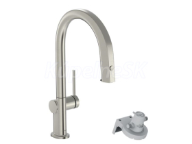 Hansgrohe Aqittura M91 drezová batéria s výsuv. koncovkou a filtrač. hlavicou vzhľad Nerez