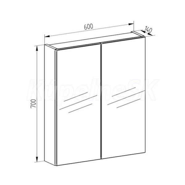 Zákazková výroba, Kúpeľňová galerka 600x700x140 mm, zrkadlová skrinka, 2 x dvierka, dve policové dosky, Multidecor, Biela Arctic