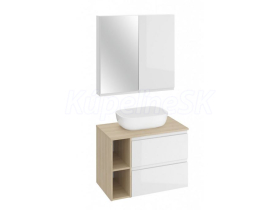 MODUO 40 biela zrkadlová skrinka, MODUO 40 biela nástenná skrinka. Súčasťou súpravy je aj pracovná doska MODUO 80 v dubovom prevedení a obdĺžnikové umývadlo MODUO 50 na podstavci.