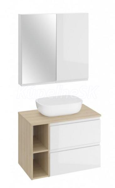 Cersanit Moduo Set B690 skrinka pod umývadlo 60 biela,otvorený modul 20 dub,doska pod umývadlo 80 dub,umývadlo na dosku 50 biele,zrkadlová skrinka 40