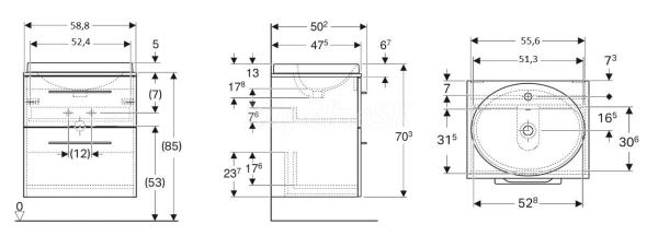 Geberit Selnova Square skrinka+zápustné umývadlo+nábyt.doska 59x70x50 cm,Biela lesklá