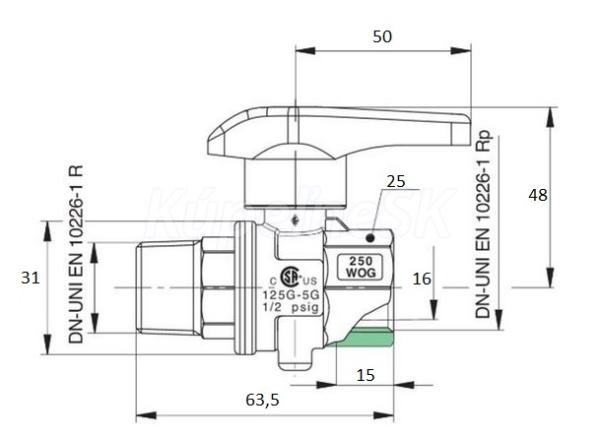 RB Klapkový škrtiaci ventil MF so šróbením s KLIK-pákou DN15(1/2") PN16,-10°C/+130°C