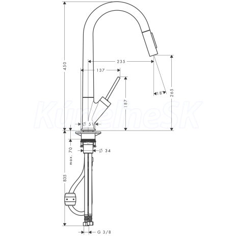 Axor Starck Páková kuchynská armatúra s vyťahovacou spŕškou,vzhľad ušľa
