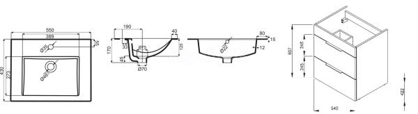 Jika Cube umývadlová skrinka 55x43 cm s umývadlom,2 dvierka,Antracit