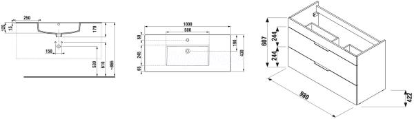 Jika Cube umývadlová skrinka 100x43 cm s umývadlom,2 zásuvky,Jaseň