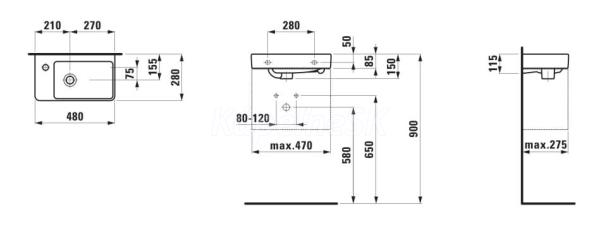 Laufen Pro S malé umývadielko 48x28 cm,otvor pre batériu vľavo,prepad,Biela LCC