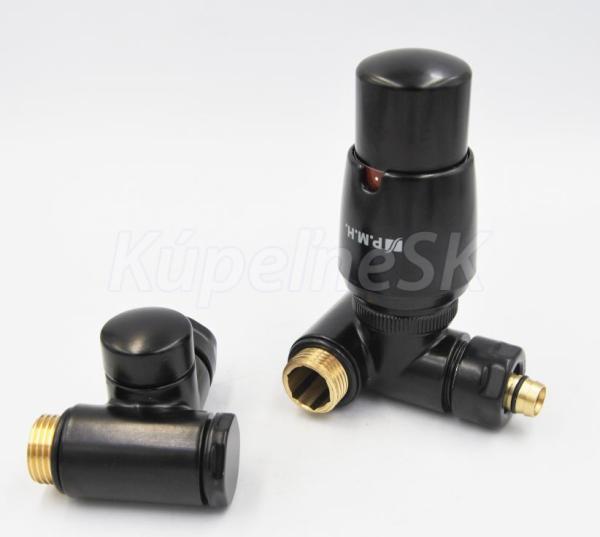 PMH Inter ventil Pravý rohov uhlový+termost.hlavica+šrób.na spiatočku,M22x1,5,Čierna matná