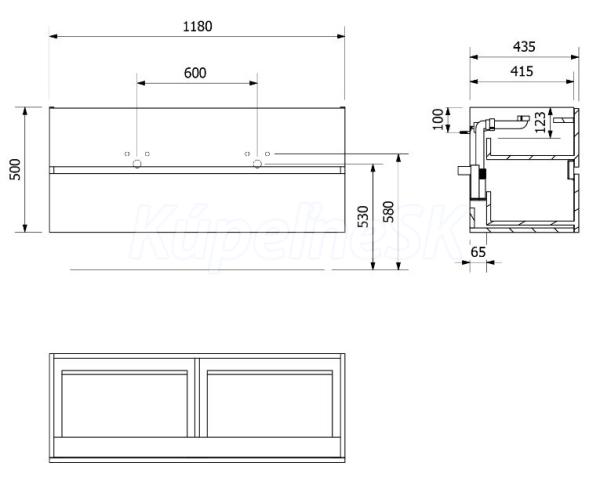 ZnačkaSAPHO SériaODETTA 3D modelÁNO Rozmer118x50x43,5 cm Šírka1180. mm Výška500. mm Hĺbka