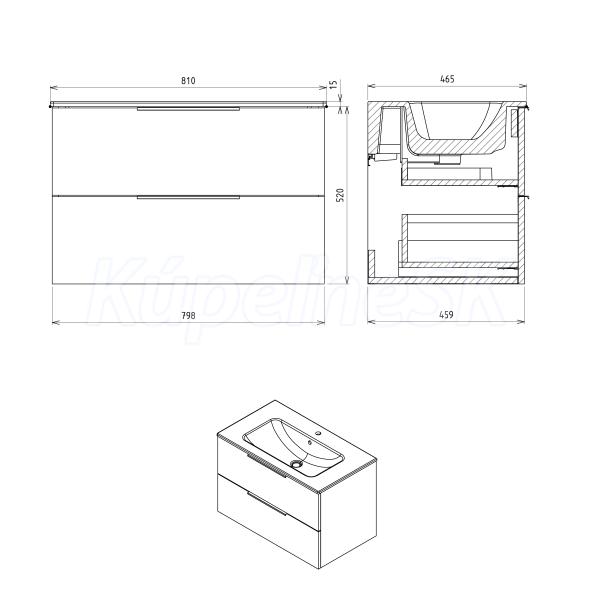 ZnačkaSAPHO SériaCIRASA 3D modelÁNO Rozmer79,8x52x46 cm Šírka798. mm Výška520. mm Hĺbka46