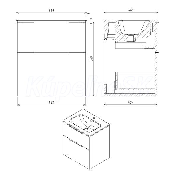 ZnačkaSAPHO SériaCIRASA 3D modelÁNO Rozmer59,2x64x46 cm Šírka592. mm Výška640. mm Hĺbka46