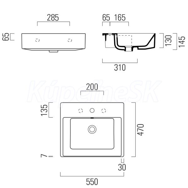GSI KUBE X keramické umývadlo 55x47cm, polozápustné, bez otvoru, biela ExtraGlaze