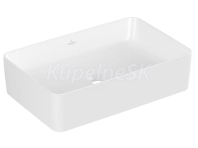 Villeroy & Boch Collaro Umyvadlo k postavení na desku 560x360 obdélník, pro nástěnnou armaturu nebo armaturu se zvýšeným tělem, bez plochy pro otvor pro armaturu, bez přepadu, doporučení: montáž s minimální vzdáleností mezi zadní stěnou umyvadla a stěnou: 50 Stone White CeramicPlus