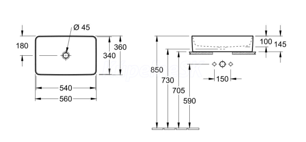 - doporučená montáž s minimálnou vzdialenosťou medzi zadnou stenou umývadla a stenou: 50 mm
