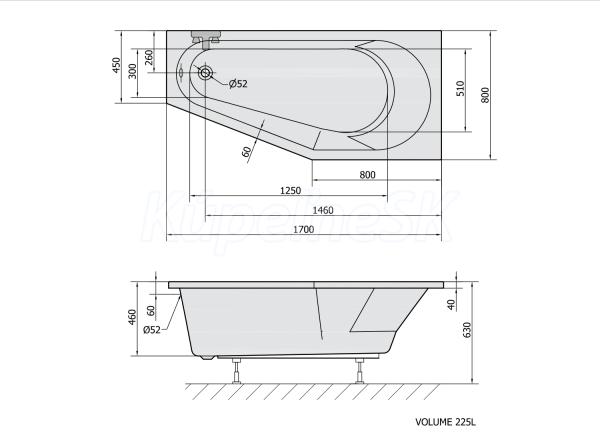Polysan TIGRA R akrylátová asymetrická vaňa na obmurovanie 170x80x46cm, ivory