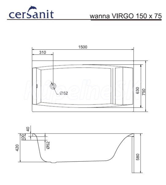 Cersanit VIRGO Vaňa obdĺžniková 150x75 akrylátová + nohy, Biela S301-048 -II.trieda