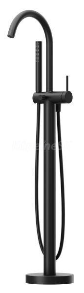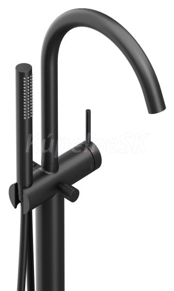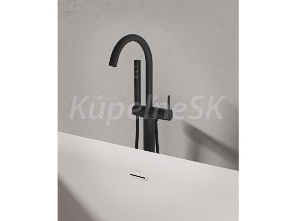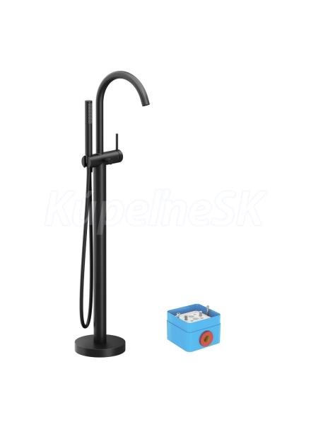Vaňová batéria na podlahu Freedomse sprchovým setom, určená pre R-box. V čiernom matnom vyhotovení.