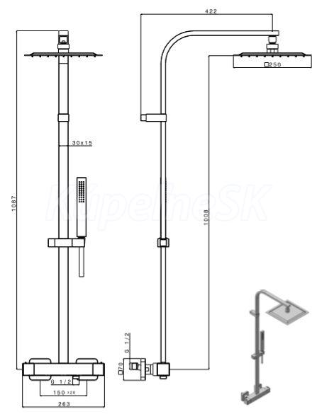Sprchový stĺp s ,termostatickou batériou Rozteč prívodov 150 mm Prepínač ručná / hlavová sprcha, integrovaný do ovládacej rukoväti Hlavová sprcha SLIM Arial" size="2 ABS plast: 250x250 mm Arial" size="2 Protherm - ochrana proti popáleniu (horúca voda nezahrieva telo batérie) Arial" size="2 SECUREstop - bezpečný systém proti obareniu Arial" size="2 Materiál: mosadz Arial" size="2 Povrchová úprava: chróm Batéria je továrňou nastavená a odskúšaná pri tlaku 3 bary na oboch vstupoch. Za týchto podmienok je funkčnosť batérie optimálny s ,akýmkoľvek typom ohrevu vody. Pri tlaku nad 5 barov odporúčame inštaláciu redukčného ventilu. Sprchový stĺp s ,termostatickou batériou Rozteč prívodov 150 mm Prepínač ručná / hlavová sprcha, integrovaný do ovládacej rukoväti Hlavová sprcha SLIM Arial" size="2 ABS plast: 250x250 mm Arial" size="2 Protherm - ochrana proti popáleniu (horúca voda nezahrieva telo batérie) Arial" size="2 SECUREstop - bezpečný systém proti obareniu Arial" size="2 Materiál: mosadz Arial" size="2 Povrchová úprava: chróm Batéria je továrňou nastavená a odskúšaná pri tlaku 3 bary na oboch vstupoch. Za týchto podmienok je funkčnosť batérie optimálny s ,akýmkoľvek typom ohrevu vody. Pri tlaku nad 5 barov odporúčame inštaláciu redukčného ventilu.
