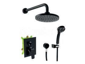 kategória distribúcie Novaservis: Vodovodní baterie | Koupelnové sady. Sprchová podomietková sada s príslušenstvom v prevedení čierna-mat. Box je dodávaný spolu s krytom a ovládacou pákou. Sada obsahuje podomietkovú sprchovú batériu s kvalitnou keramickou kartušou . s 5 ročnou zárukou. a šikovným keramickým prepínačom, plastovú hadicu 150 cm, ramienko zo zdi v dĺžke 350 mm, hlavovú sprchu o priemeru 200 mm, 3-polohovú ručnú sprchu, stenový vývod vody a držiak na ručnú sprchu.