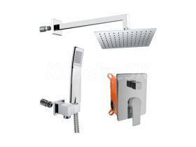 Dvojcestná podomietková batéria s keramickým prepínačom, Mbox, hranatý kryt, vývod s držiakom sprchy, rameno zo steny 330 mm, nerezová tanierová sprcha slim 300x200 mm, nerezová dvouzámková hadica 150 cm, jednopolohová ručná sprcha. 10 rokov záruka na batériu.
