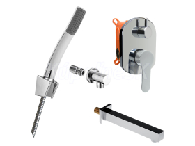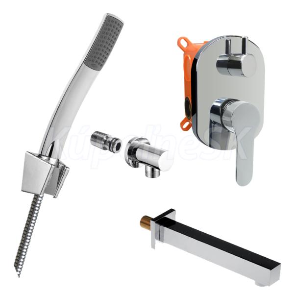 Dvojcestná podomietková batéria s keramickým prepínačom, Mbox, oválny kryt, vývod, nerezová dvouzámková hadica 150 cm, držiak sprchy, jednopolohová ručná sprcha, vaňové napúšťací ramienko. 10 rokov záruka na batériu.
