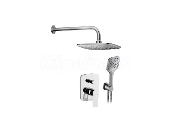 Šesťdielny sprchový set Classic s podomietkovou batériou. Vo vyhotovení lesklý chróm. kartuša batérie (priemer, materiál): 35 mm, keramická, kompaktná – nie je určená pre R-Box rozmer hlavovej sprchy: 250 x 250 mm farebné vyhotovenie: CR: chróm lesklý vyhotovenie hlavovej sprchy: funkcia Air priemer ručnej sprchy: 120 mm vyhotovenie ručnej sprchy: 3 funkcie prietoku vody - Rain, Jet, Rain + Jet systém čistenia trysiek sprch: EasyClean - pre odstránenie vodného kameňa dĺžka sprchovej hadice: 200 cm materiál hadice: kovová s antibakteriálnou ochrannou vrstvou z odolného plastu funkcia hadice: EasyTwist - umožňuje voľné pretáčanie ručnej sprchy, a tým zabraňuje prekrúteniu hadice Podomietková batéria s prepínačom sa postará o prepínanie prietoku vody medzi hlavovou a ručnou sprchou. Vývod vody do hlavovej sprchy je vedený cez výtokové rameno. Hlavová sprcha disponuje funkciou Air, ktorá umožňuje prisávanie vzduchu do sprchy. Vďaka tomu možno dosiahnuť príjemnejší pocit z dopadu vody na pokožku a zároveň k jej úspore. Voda do sprchovej hadice a ručnej sprchy prietoki cez držiak ručnej sprchy. Ručná sprcha je vybavená tromi režimami prietoku vody. Režim Prietoku Rain pripomína letný dážď a pôsobí na upokojenie pokožky. Pomocou režimu Jet dosiahnete silný prietok zo stredu sprchy, ktorý intenzívne prekrví pokožku. Vhodný je aj pre čistenie menej dostupných miest v kúpeľni. Tretí režim ponúka kombináciu oboch týchto režimov. Funkcia EasyClean umožňuje jednoduché odstránenie vodného kameňa z trysiek hlavovej i ručnej sprchy. Sprchový podomietkový set obsahuje: CL 061.00CR.O2 Podomietková batéria s prepínačom 983.00CR Hlavová sprcha ABS štvorcová, chróm 702.00CR Výtokové rameno bočné 958.00CR Ručná sprcha, 3 funkcie 706.00CR Držiak ručnej sprchy s vývodom, chróm 915.02CR Sprchová hadica