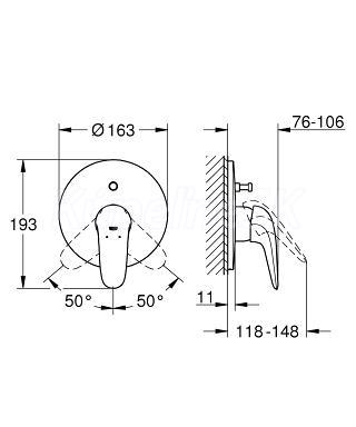 GROHE Eurostyle Páková podomietková vaňová batéria ,chróm 29099003 Vrch.diel