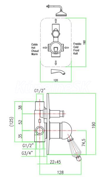 >>  Batérie vodovodné  >>  Sprchové batérie  >>  Sapho KIRKÉ CRYSTAL podomietková sprchová batéria, 2 výstupy, krištáľová páčka, zlato