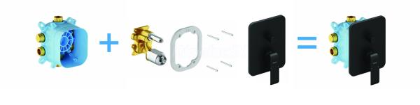 Podomietková 2-cestná vaňová/sprchová batéria Flat, určená pre R-box. V čiernom matnom vyhotovení.