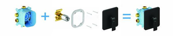 Podomietková 1-cestná vaňová/sprchová batéria Flat, určená pre R-box. V čiernom matnom vyhotovení.