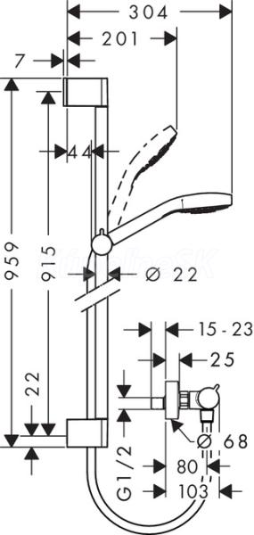 Hansgrohe ECOSTAT Comfort termostatická sprchová batéria,Croma Select E kombinácia 0,90m,biela/chróm 27082400 druh prúdu: Rain,TurboRain,SoftRain