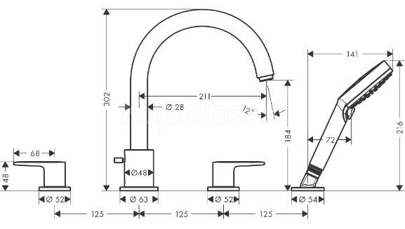 Hansgrohe Vernis Blend Vaňová 4-otvorová batéria na okraj vane, Chróm 71456000