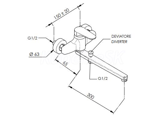 - Umývadlová/vaňová batéria nástenná s prepínačom
