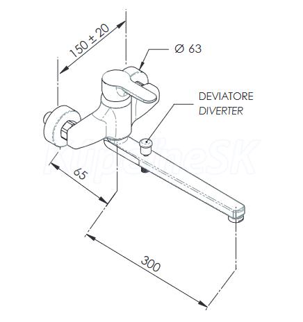 • Umývadlová/vaňová batéria nástenná s prepínačom