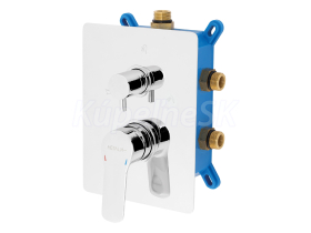 kategória distribúcie Novaservis: Vodovodní baterie | Podomítkové boxy. Kvalitná a odolná keramická kartuš KEROX 35 mm . s predĺženou zárukou  7 rokov. Prvotriedne chrómové prevedenie. Vaňová a sprchová podomietková batéria s boxom a keramickým prepínačom pre 3 vývody. Box je dodávaný komplet vrátane krytu a ovládacej páky.