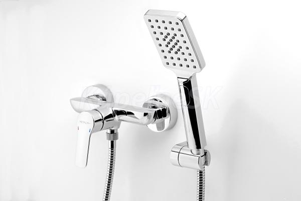 kategória distribúcie Novaservis: Vodovodní baterie | Sprchové baterie nástěnné. Kvalitná a odolná keramická kartuš KEROX 35 mm . s predĺženou zárukou  7 rokov. . Prvotriedne chrómové prevedenie. Sprchová nástenná batéria s rozstupom 150 mm. Súčasťou balenia je kovová sprchová hadica dĺžky 150 cm s anti-twist proti prekrúteniu, otočný držiak sprchy a úsporná 3-polohová ručná sprcha s prietokom iba . 6,6 l/min..