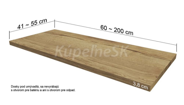 Na požiadavku zákazníka je možné dodať umývadlovú dosku v rozmere ATYP. Dĺžka dosky sa dá skrátiť maximálne o 20 a cm a šírka sa dá skrátiť maximálne o 4 cm.